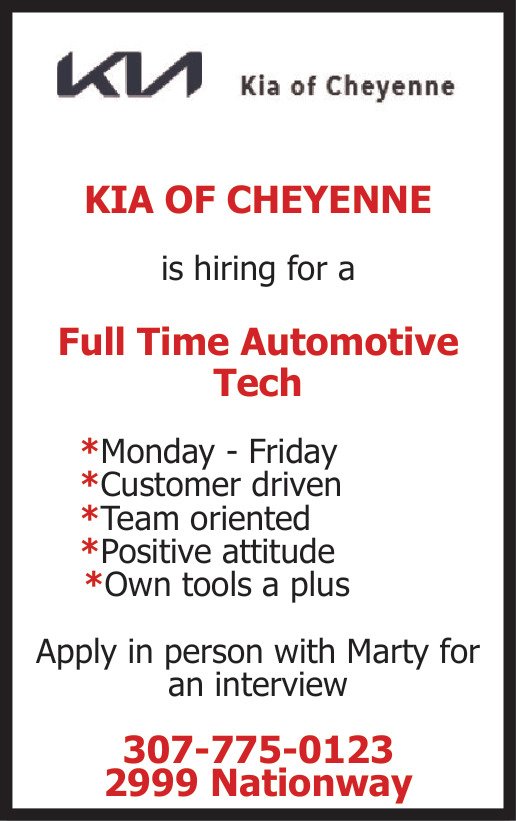 Apr 01, 2026. Kia of Cheyenne Technicians Jobs from Southern Wyoming Jobs