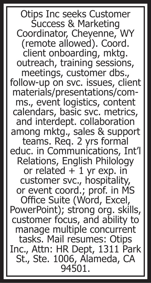 Apr 11, 2026. Otips Inc Sales & Marketing Jobs from Southern Wyoming Jobs